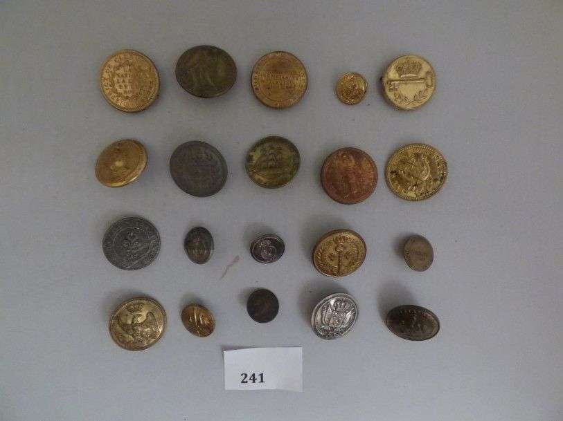 Lot de boutons, de l'Ancien régime à Louis-Philippe, dont Fonctionnaire révolutionnaire, District de Clermont-Ferrand, Subsistances militaires, État-major des Places, Garde impériale, Garde municipale de Paris… (20 pièces env.)