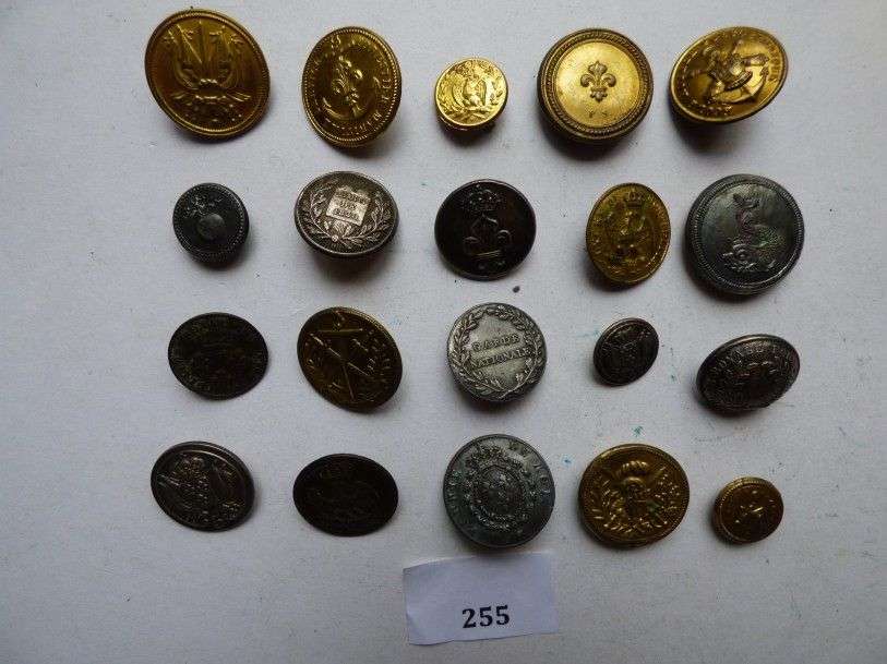 Lot de boutons, de l'Ancien régime à Louis-Philippe, dont Garde impériale, École royale forestière, Officier Médecin de la Garde impériale… (20 pièces env.)