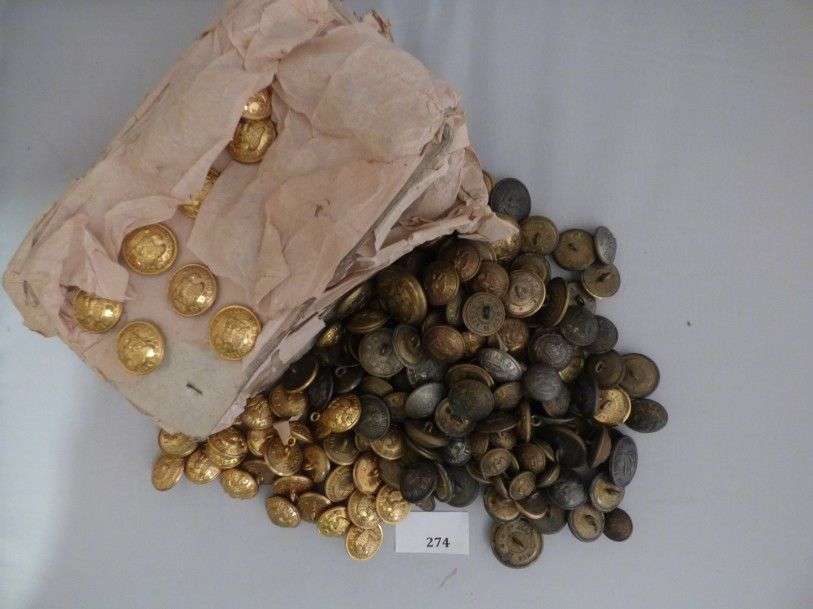 Lot de boutons, Second Empire, Garde impériale, Gendarmerie, Lycée impériale de différentes villes, Haras Impérial, de livrée de la Maison impériale et de la Famille impériale, Grande Chancellerie de la Légion d'honneur … (140 pièces env.) On joint un fort lot de boutons de l'Institution communale de Marseillan.