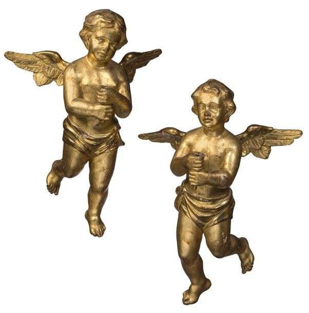 Paire d'anges céroféraires en bois sculpté et doré.
