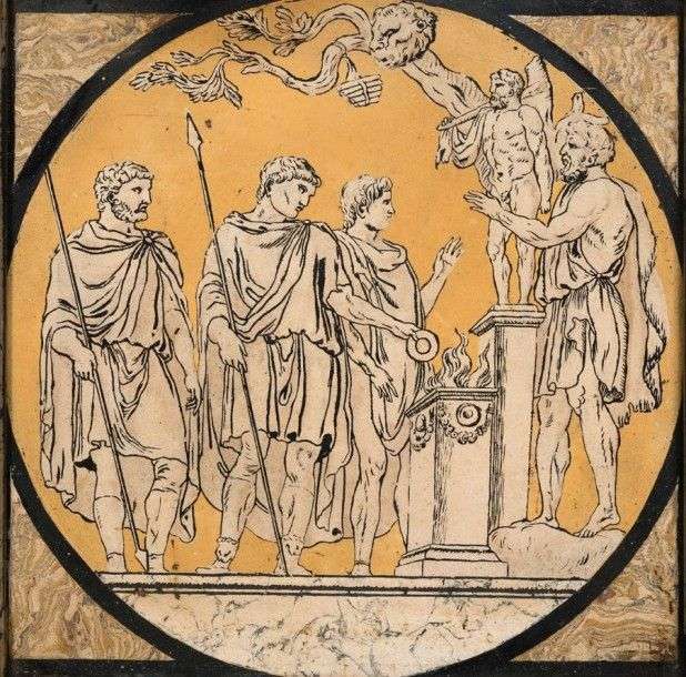 Plaque en scagliole sur fond d'ardoise représentant une scène mythologique