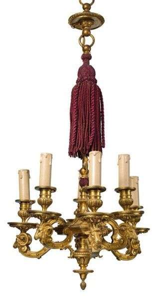 Paire de petits lustres à six bras de lumière, ornés de têtes de béliers