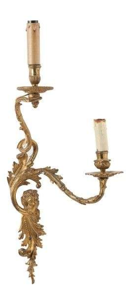 Paire d'appliques en bronze ciselé et doré, les platines à enroulements d