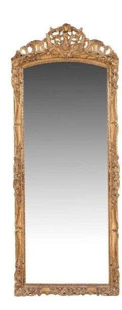 Miroir de forme rectangulaire en bois mouluré, sculpté et doré.