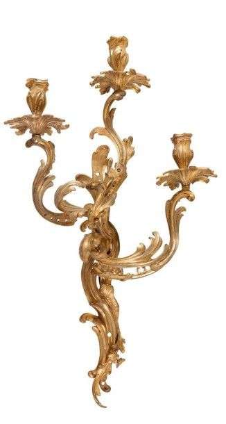 Paire d'importantes appliques en bronze ciselé et doré à trois bras de lum