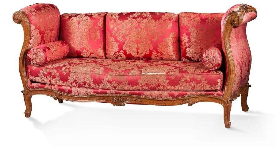 Lit de repos "à la turque" en noyer mouluré et sculpté de fleurettes, feuillage et acanthes.