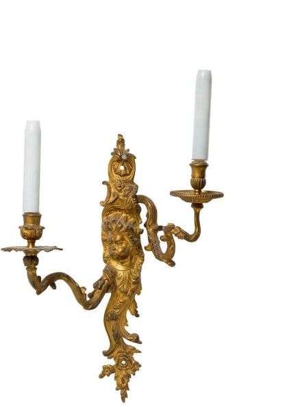 Paire d'appliques "aux zéphyrs" en bronze ciselé et doré à deux bras de lu