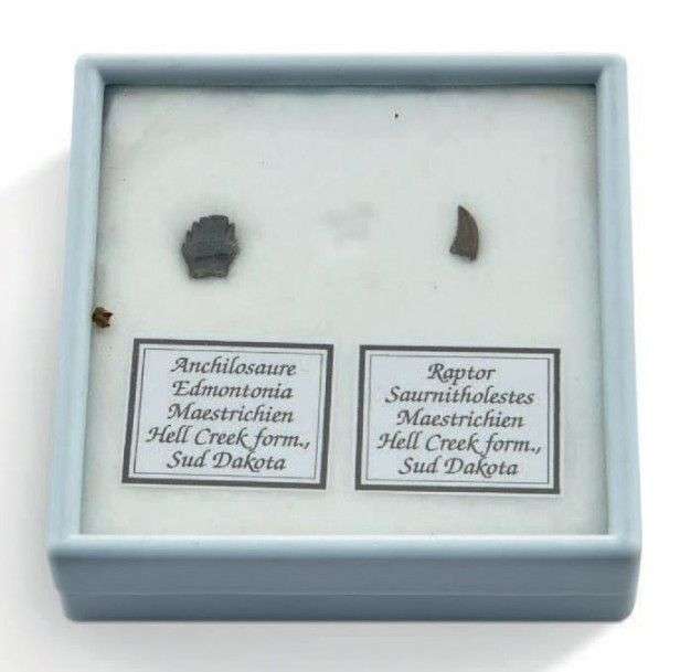 Lot d'une dent d'Ankylosaure et d'une dent de Raptor (Saurornitholeste).Ma