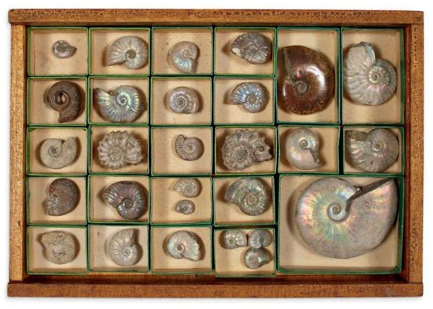 Coffret contenant une collection de 25 ammonites. Albien, et divers