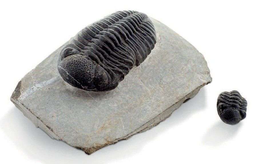 Trilobite Phacops, Dévonien, Erfoud, Maroc, avec un juvénile Dimension: 8