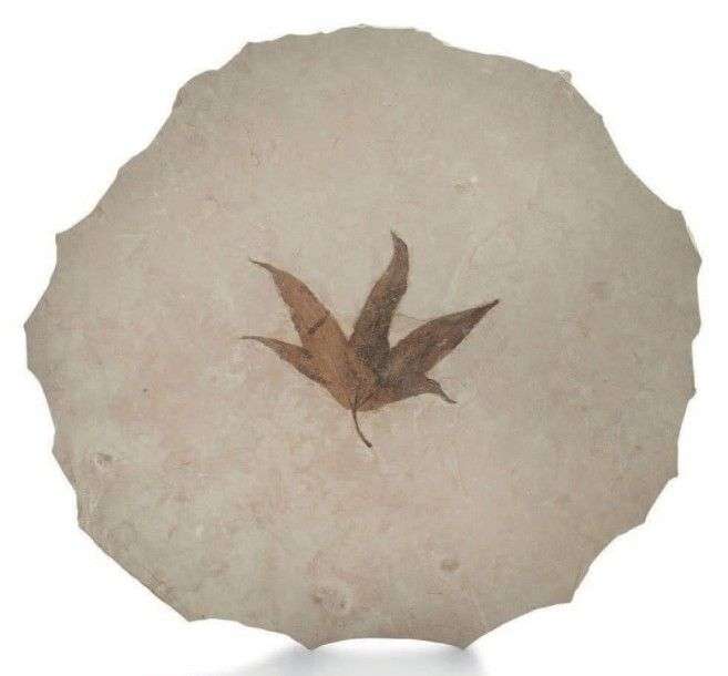 Feuille fossile d'érable. Eocène, Wyoming, U.S.A Dimensions de la plaque: