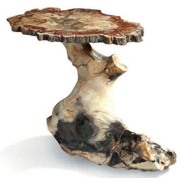 Table en bois fossile formant un «bout de canapé»