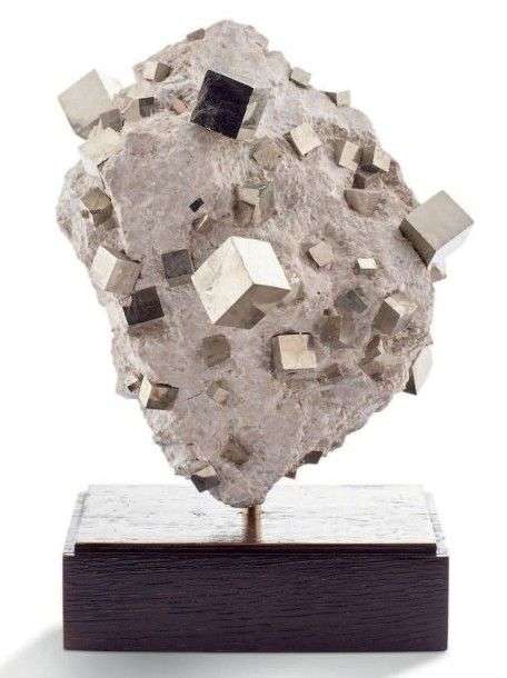 La pyrite cubique ou hexaèdre de la mine Navajun en Espagne est unique au monde. Cette mine découverte en 1960 est la seule qui offre ces cristaux cubiques. Spécimen présentant plusieurs cristaux cubiques sur la gangue.