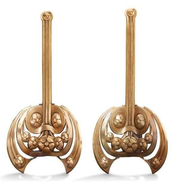 Paire de chenets en bronze doré à décor de motifs floraux stylisés.