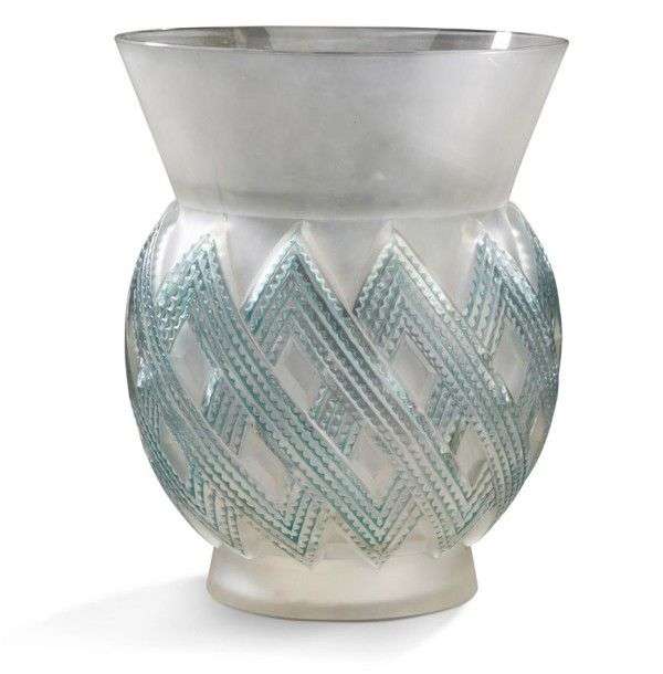 Vase modèle "Entrelacs" en vere moulé pressé satiné et patiné.