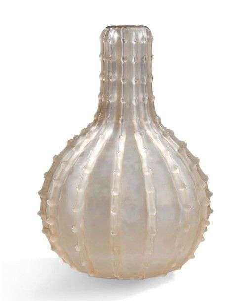 Vase modèle «Dentelé» en verre moulé presse satiné.