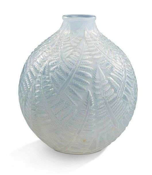 Vase modèle «Espalion» en verre opalescent moulé pressé.