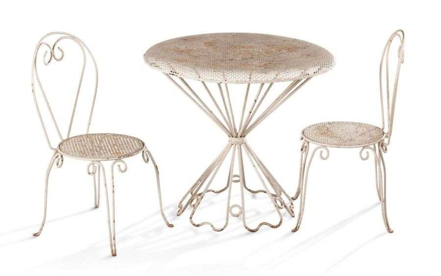Table à plateau circulaire ajouré en métal tubulaire laqué blanc reposant sur un piétement ajouré ondulé composé de disques.