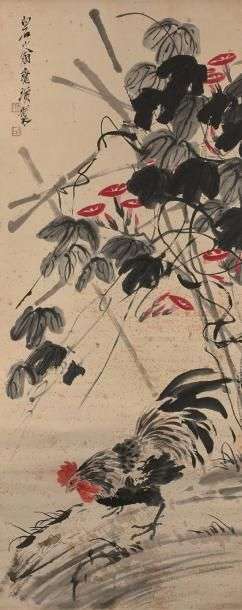 Bol en porcelaine et émaux polychromes à décor au revers de fleurs, criquet et canards, l'intérieur orné de fruits et chauves-souris, le pourtour souligné d'un filet doré.