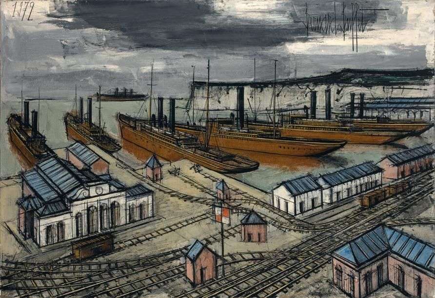 BERNARD BUFFET BATEAUX DANS LE PORT, 1972