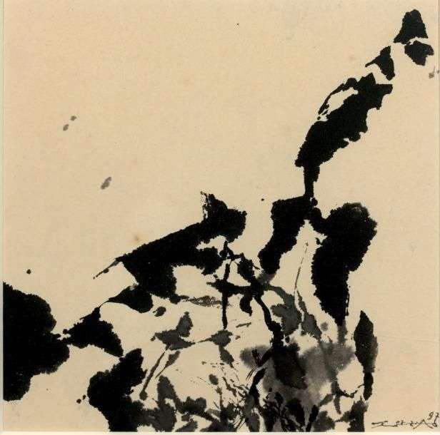Nous présentons aujourd'hui à la vente une encre réalisée en 1998. Il s'agit de la technique de prédilection de l'artiste, un temps délaissée, et vers laquelle il se réinvestit particulièrement à partir de 1971, sous l'impulsion notamment du peintre Henri Michaux. L'encre permet à Zao Wou-Ki de «réinterpréter l'abstraction selon la conception chinoise du geste et de l'espace»[2]. L'artiste joue sur les tâches, les traces et les projections. Au terme d'un véritable ballet, le motif jaillit de la feuille blanche pour donner vie à l'oeuvre d'art. Le procédé, éminemment symbolique, permet à l'artiste d'engendrer des oeuvres empreintes d'une indéniable poésie.