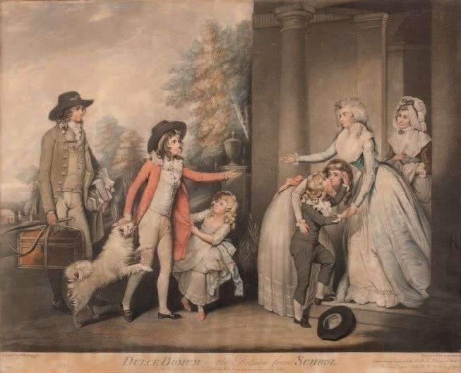 Paire de gravures anglaises "Departure from school" "Return from school"