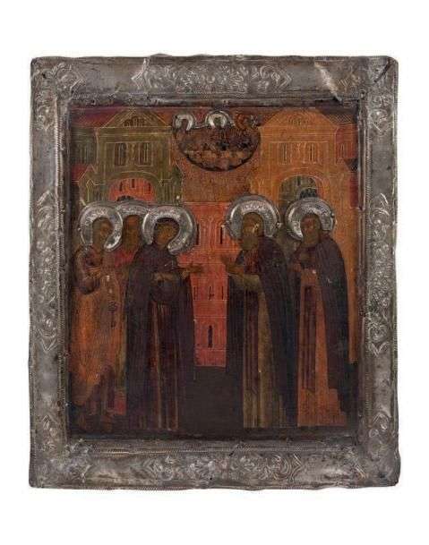 Icône de la Vierge et des saints Serge et Nicandr. Russie XVIIIe siècle