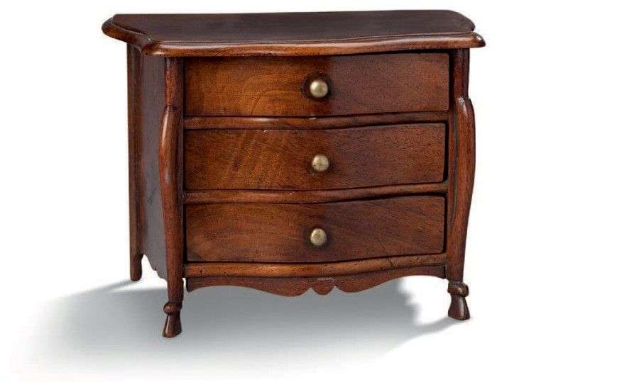 Commode miniature en bois naturel ouvrant par trois tiroirs.