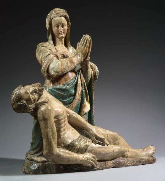 Pietà en bois polychrome