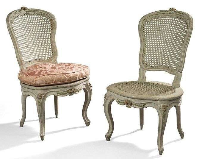 Paire de chaises à haut dossier violoné en hêtre mouluré, sculpté et laqué