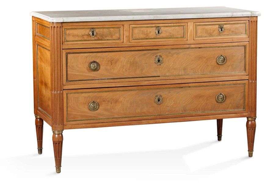 Montants arrondis et pieds fuselés à cannelures rudentées.