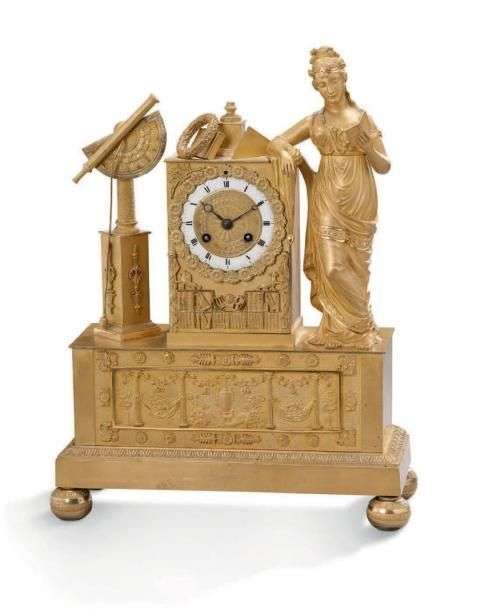 Pendule en bronze doré ciselé à décor d'une allégorie des Sciences et de l