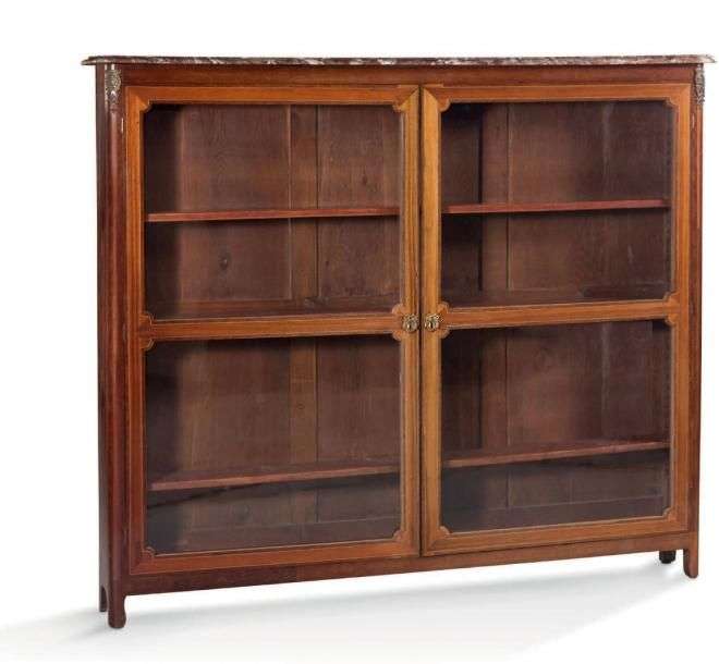 Paire de bibliothèques en placage de bois de rose et d'amarante, ouvrant à deux larges portes vitrées| montants arrondis.