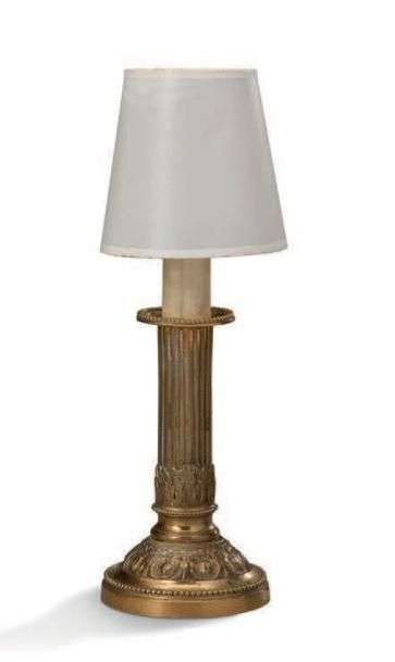 Paire de petits flambeaux en bronze doré ciselé et doré, le fût cannelé, b