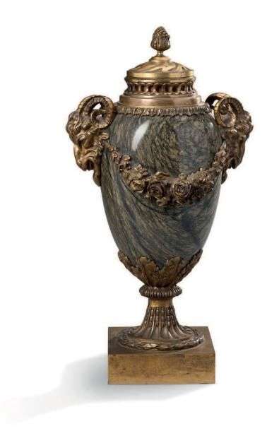 Montures et anses en bronze ciselé et doré à décor de têtes de béliers.