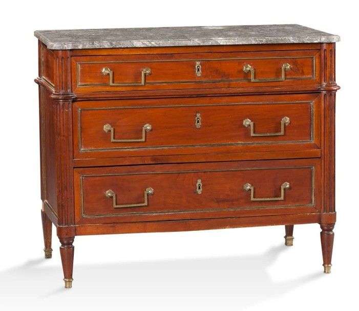 Petite commode de forme rectangulaire en acajou et placage d'acajou.