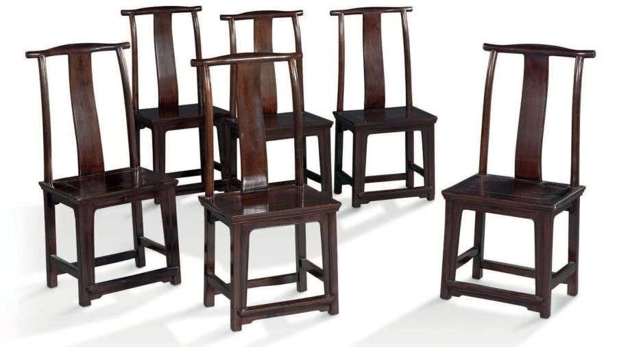 Ensemble de six chaises en bonnet de lettré, en bois de fer.