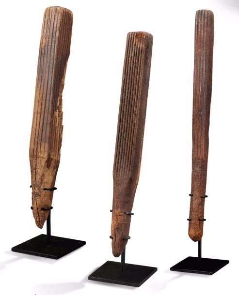 TROIS BATTOIRS À TAPA I'E KUKU, ÎLE D'HAWAÏ, ÎLES HAWAÏENNES, POLYNÉSIE DATATION PROPOSÉE XVIIIÈME SIÈCLE THREE TAPA BEATERS I'E KUKU, HAWAÏ ISLAND, HAWAIIAN ISLANDS, POLYNESIA PROPOSED DATING: XVIII CENTURY.