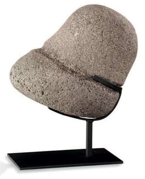 PIERRE POUR ROMPRE LES CANOÉS PÖHAKU KU'I WA'A, ÎLES HAWAÏENNES, POLYNÉSIE DATATION PROPOSÉE XVIII/ XIXÈME SIÈCLE STONE CANOE BREAKER PÖHAKU KU'I WA'A, HAWIIAN ISLANDS, POLYNESIA PROPOSED DATING: XVIII/XIX CENTURY.
