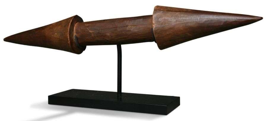 Axe en bois pourvu de deux pointes coniques.