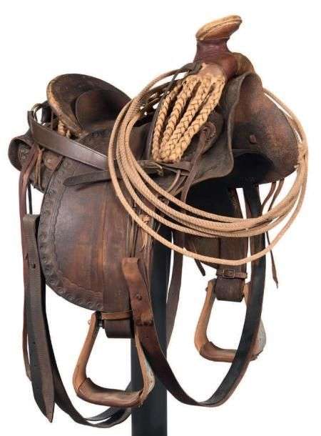 Belle selle en cuir en proveannce du Ranch Mendes. Un rare témoignage de la culture cow boy sur les îles hawaïennes.