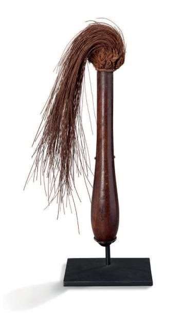 Chasse mouche composé d'un manche en bois en forme de goutte, armé d'un faisceau de fibres. Ce type d'instrument notait aussi un rang social élévé pour son utilisateur.