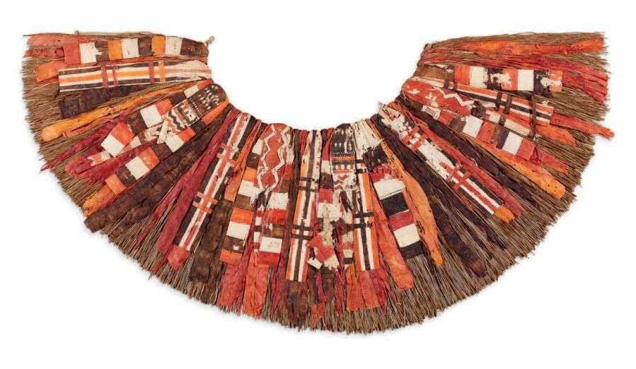 Pagne de danse composé de fibres teintées. Consolidations sinon belle conservation.