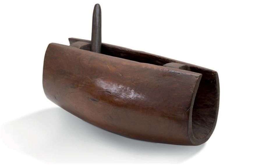 Beau tambour à fente. Plus qu’un vrai tambour, il s’agit d’un idiophone.
