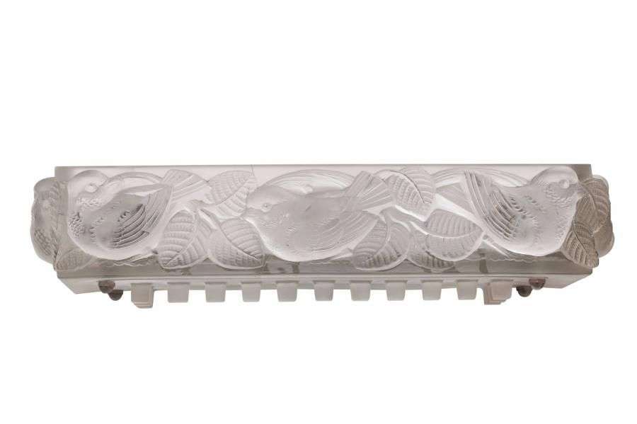 Applique murale modèle "Moineaux II" en verre moulé pressé satiné à décor en relief de moineaux.