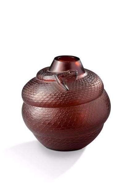 Vase «Serpent» en verre soufflé-moulé de couleur ambre.