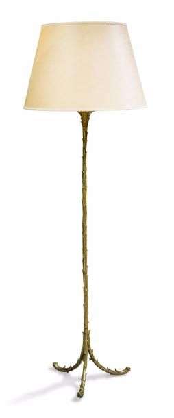 Lampadaire en bronze doré à décors de motifs floraux stylisés et reposant sur un piétement tripode.
