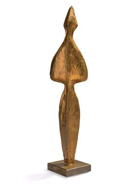 Sculpture anthropomorphe en fonte d'aluminium doré.