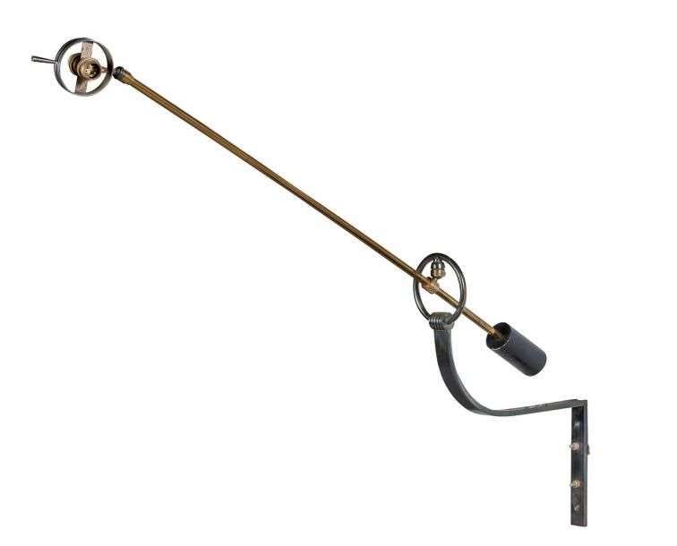 Applique potence en laiton et bronze doré et patine canon de fusil à balancier et rotules.