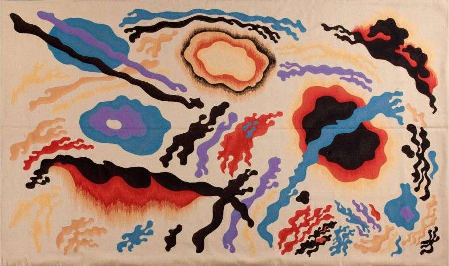 Tapisserie en laine rase à décor de motifs géométriques polychrome.